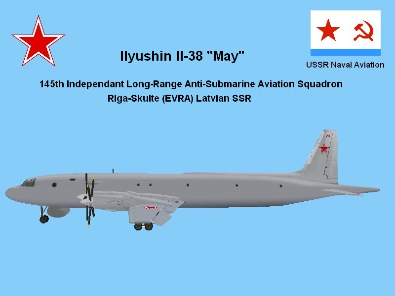 Ilyushin Il-38 "May" of 145th Independant long-range anti-submarine squadron (Riga-Skulte - EVRA) for eighties retro traffic, uploaded this day in AVSIM site.